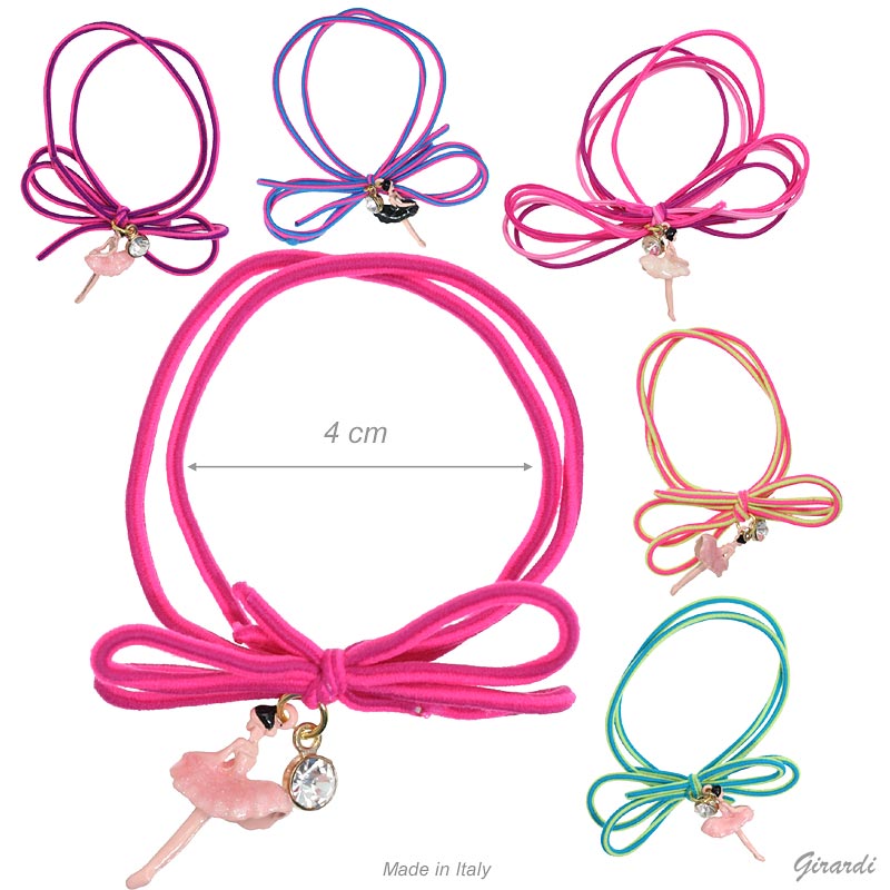 Πολύκλωνο ελαστικό βραχιόλι με εμαγιέ μενταγιόν μπαλαρίνα από μέταλλο και στρας